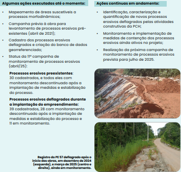 Previne e controla erosões em áreas impactadas pelas obras, como vias de acesso e áreas de bota-fora.