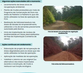 Recupera áreas impactadas pelas obras, restaurando sua função ecológica e prevenindo erosões futuras.